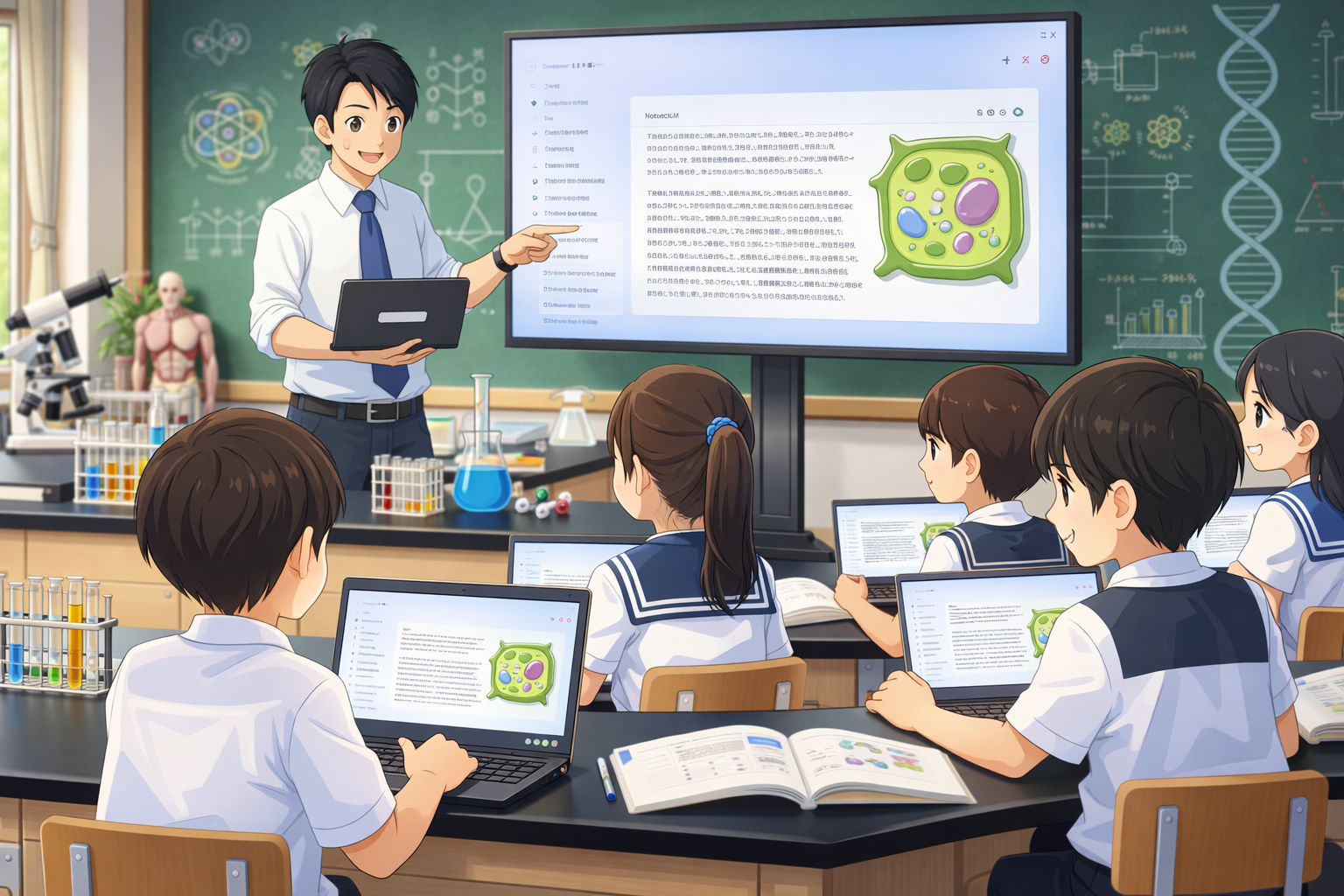 授業では、時々、NotebookLMで作成した動画 1 を電子黒板で流しながら、私がその動画の内容を板書するということもしました。これは、面白い活用だったと思います。NotebookLMがこんな感じに活用できるであれば、教材研究も効率化が図れるだろうし、うまく共有化が図れれば、業務の改善にもつながりそうです。