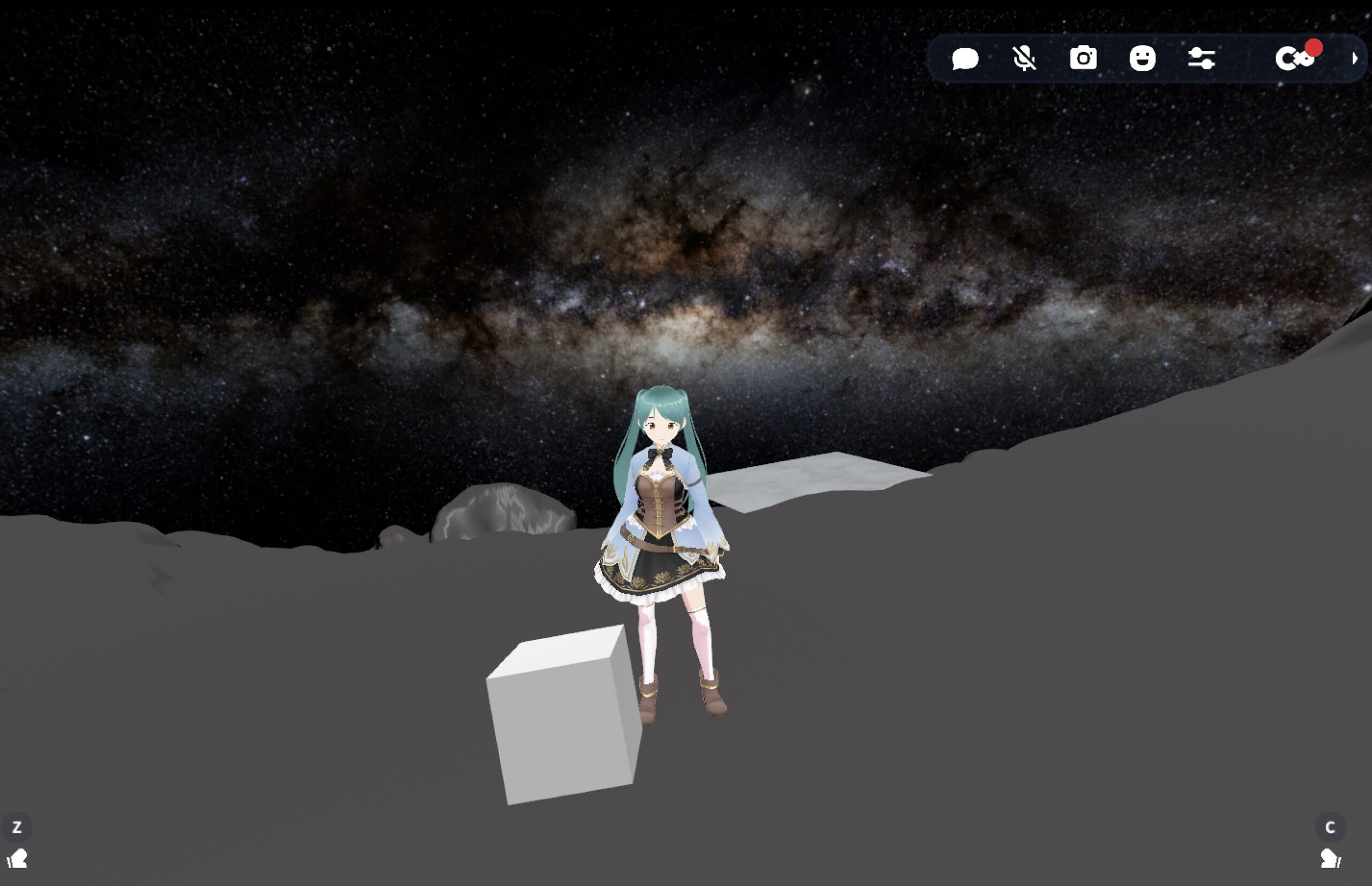 かつて、小惑星リュウグウの3Dデータを使ってワールドを作りました。まだ、投げられるキューブが1個とスクリーンがあるだけです。重力がY軸方向なので,1周することはできません。端まで行くと落ちます。(笑)